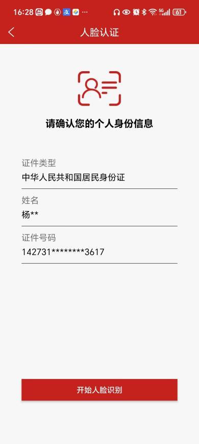 APP 上会提示用户账号对应的真实用户姓名和证照号码,如下图所示: